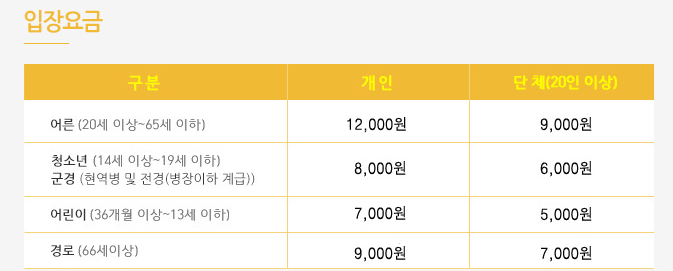- 청소년: 8,000원 (중, 고등학생)